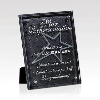 - Industrial turns elegant in the Walk the Talk plaque. The diamond plate pattern forms the background for the glistening glass suspended above. For ease in displaying, the Walk the Talk features an easel back allowing it to set or hang.