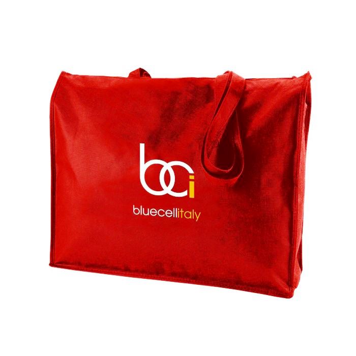 - Reinforced finish and gusseted for extra capacity Heavy duty zippered closure Light weight but incredibly sturdy Non-woven handles with 16 drop Made of 80 gsm non-woven poly propylene. Reduce your impact on the environment by reusing these great bags again and again.