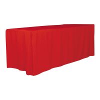 Fitted table covers fits snugly over the table top with straight pleated corners for a more formal look.