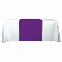 - These Table Runners add a beautiful accent to an existing covered table. They are 60” and 90” Long. 60” Runner (overall size 30” W x 60” L), drapes over the front and across the top of the table. The 90” Runner (overall size 30” W x 90” L) drapes over the front, across the top and down the backside of the table.