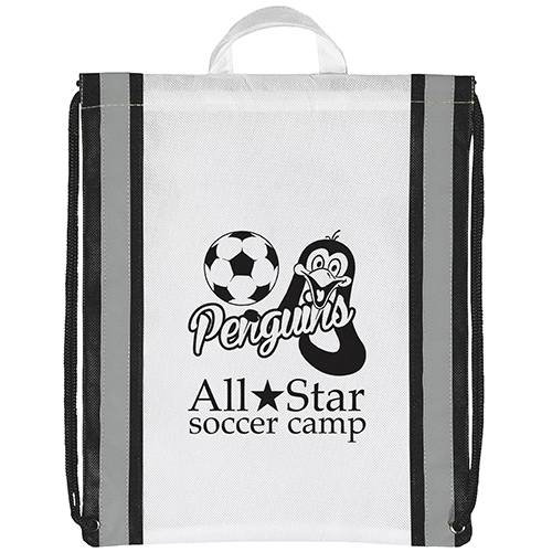 - Ideal for students, athletes, and others who are on-the-move, this lightweight backpack helps carry gear while keeping hands free. Durable 80 GSM premium non-woven polypropylene with 1" reflective stripes, black draw cords, reinforced corner grommets, and sturdy carrying handles.