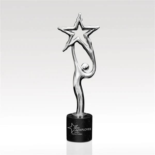 - The Argent Star features a chrome finished stylized figure and shimmering star rising from a black marble base carrying your etched message