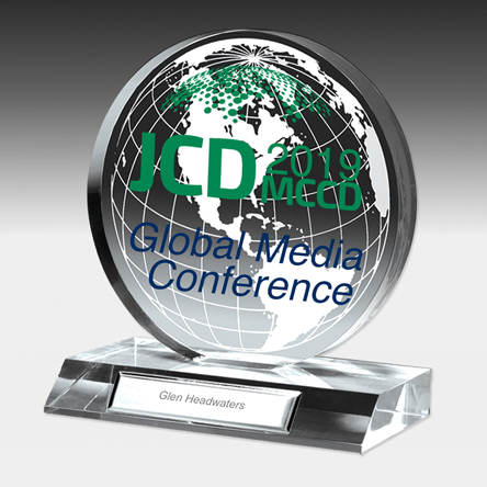 - Award comes with a stock screen printed globe background. Each award may be Screen Printed or Laser Engraved on front.