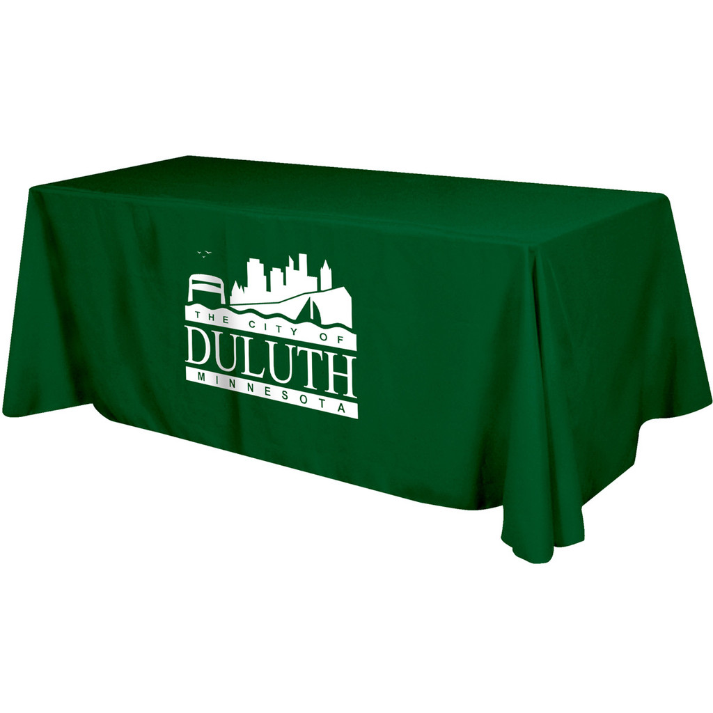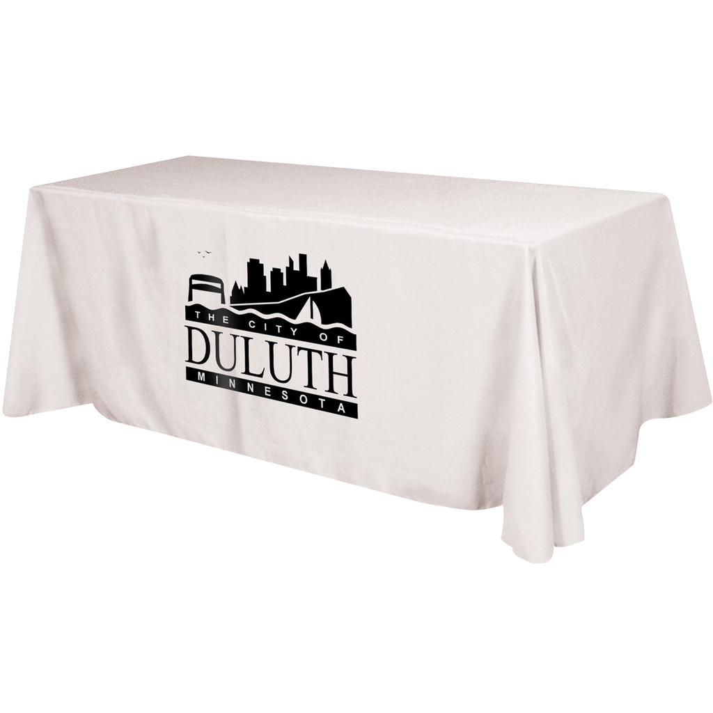 - Covers three sides of an eight foot standard table. Premium quality polyester table drapes. They are washable, flame resistant and easy to store and ship. Features include rolled hem and rounded corners. Table throw drapes the top and sides (open back) of 29" high tables. Fits Table Size: 96" (w) x 29" (h) x 30" (d). Differences may occur in fabric weight, fabric finish, color and overall size of the finished product. These variations are considered acceptable.
