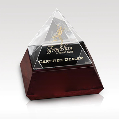 - Optic Mariposa capitalizes on the beauty of cherry finished wood with a stunning crystal peak to create an award that is both handsome and elegant. A form-fitting deep relief plate added an extra dimension.