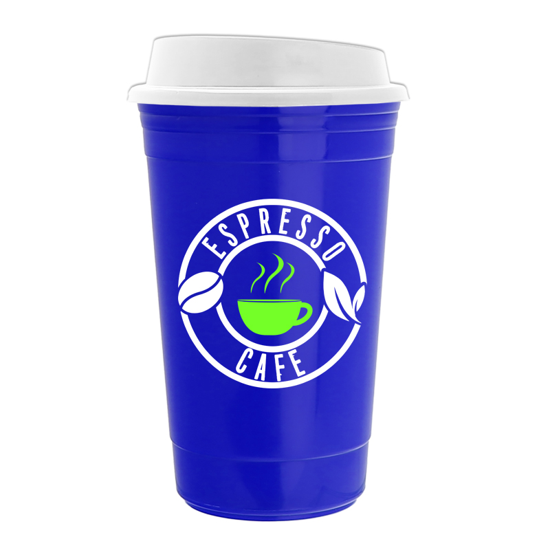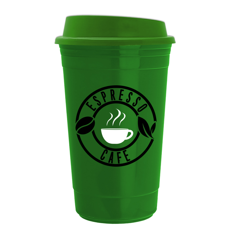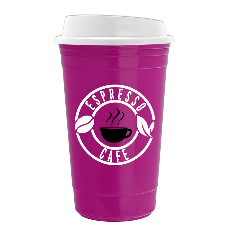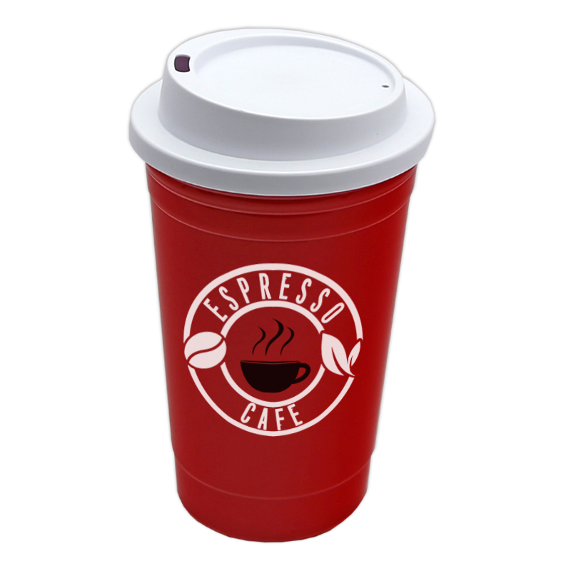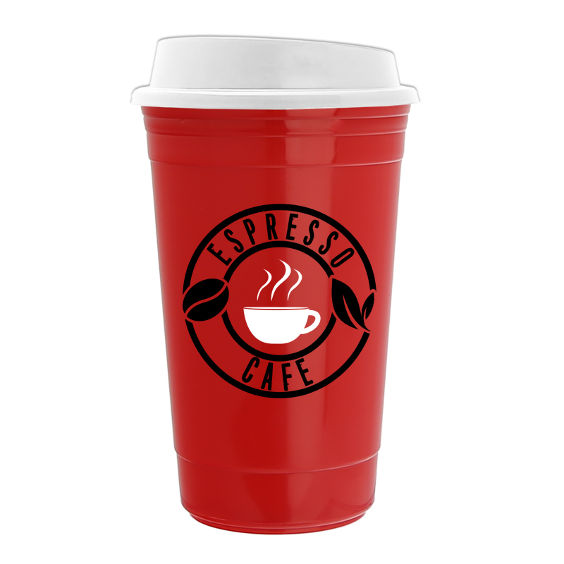 - Enjoy your hot drinks on-the-go with The Traveler - a 16 oz. double-wall insulated travel cup with a sip-through lid.