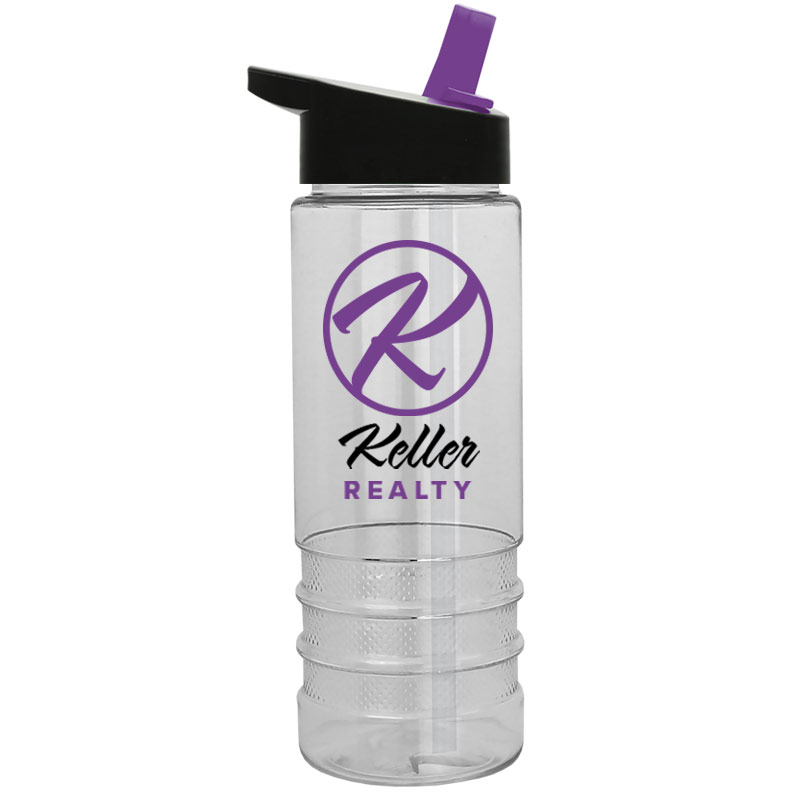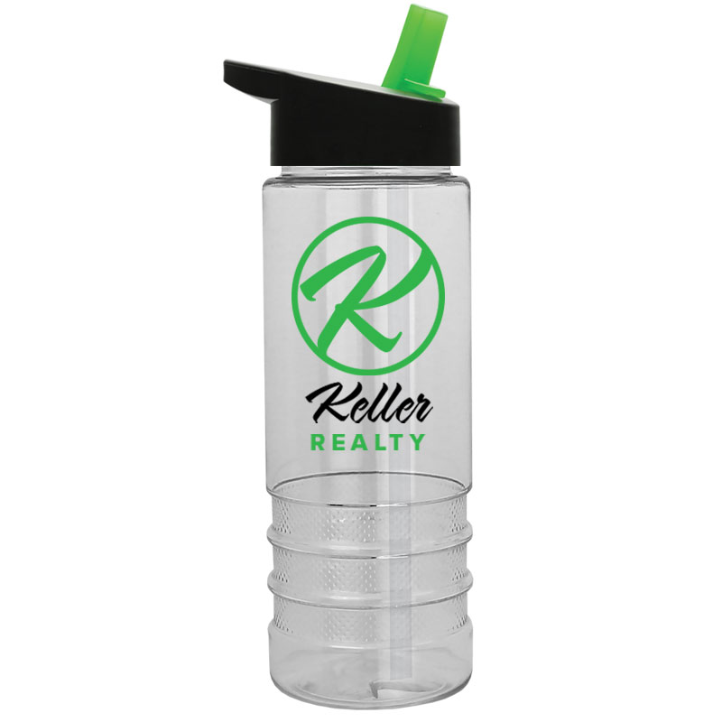 - 24 oz Wide mouth Salute Transparent Sports Bottle with Flip Straw lid