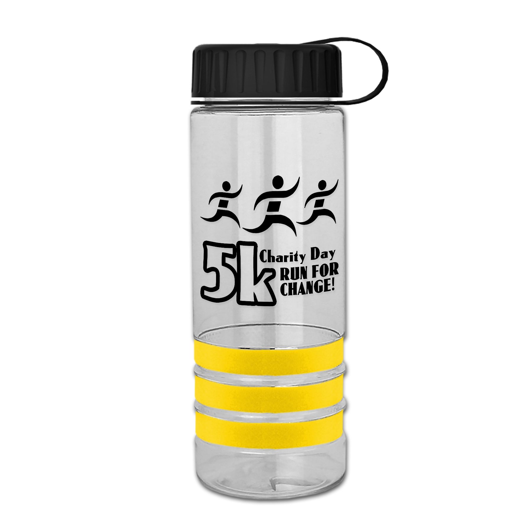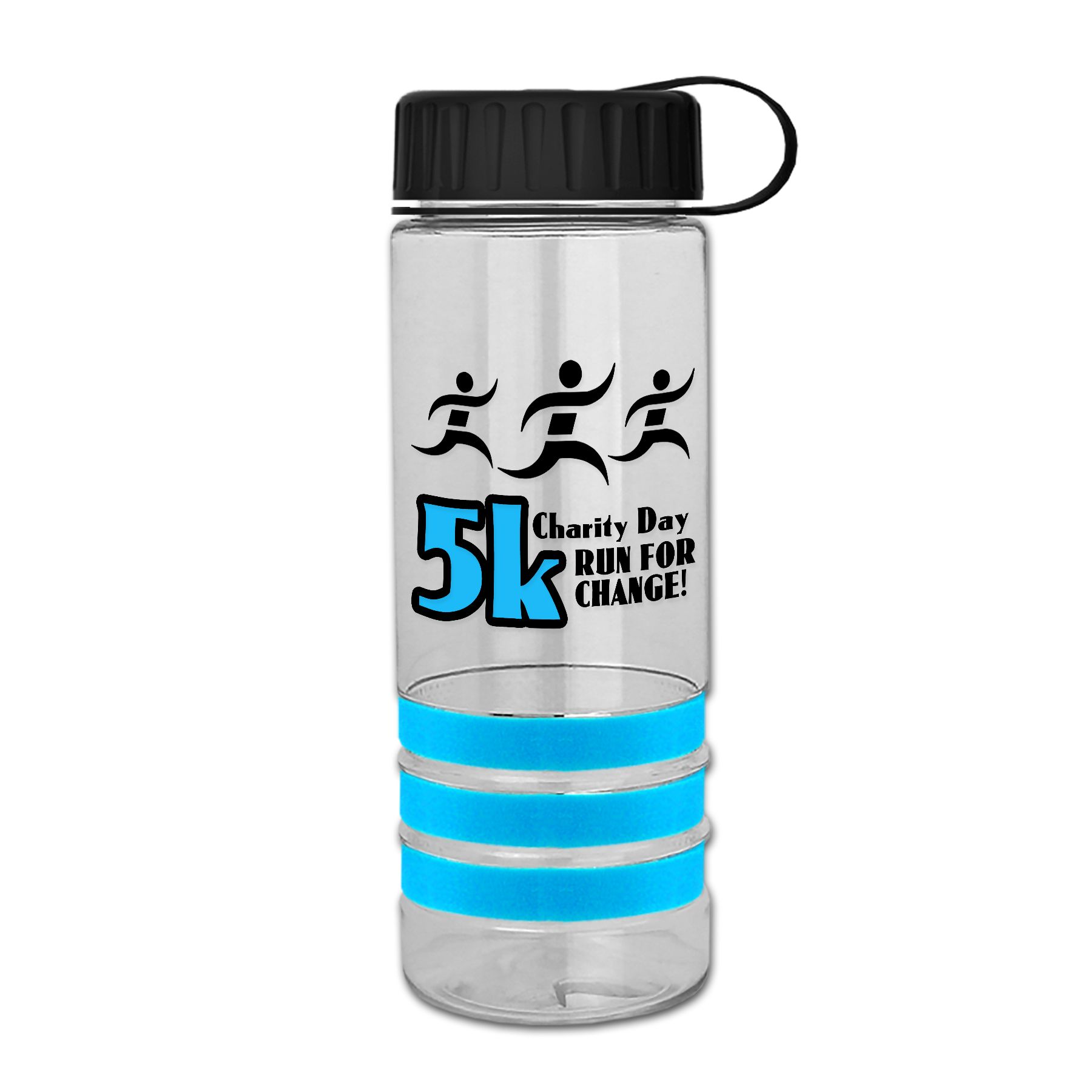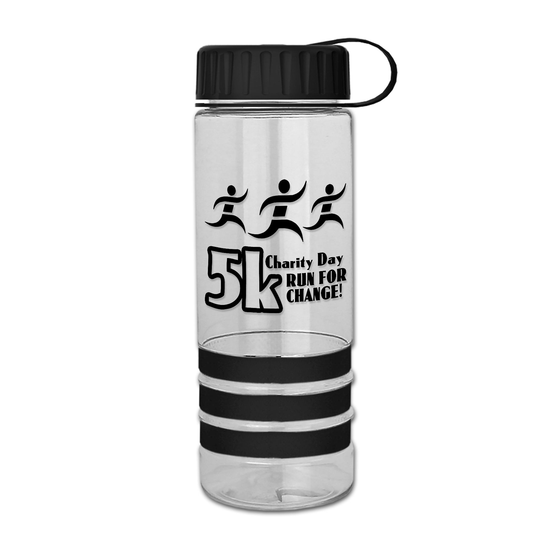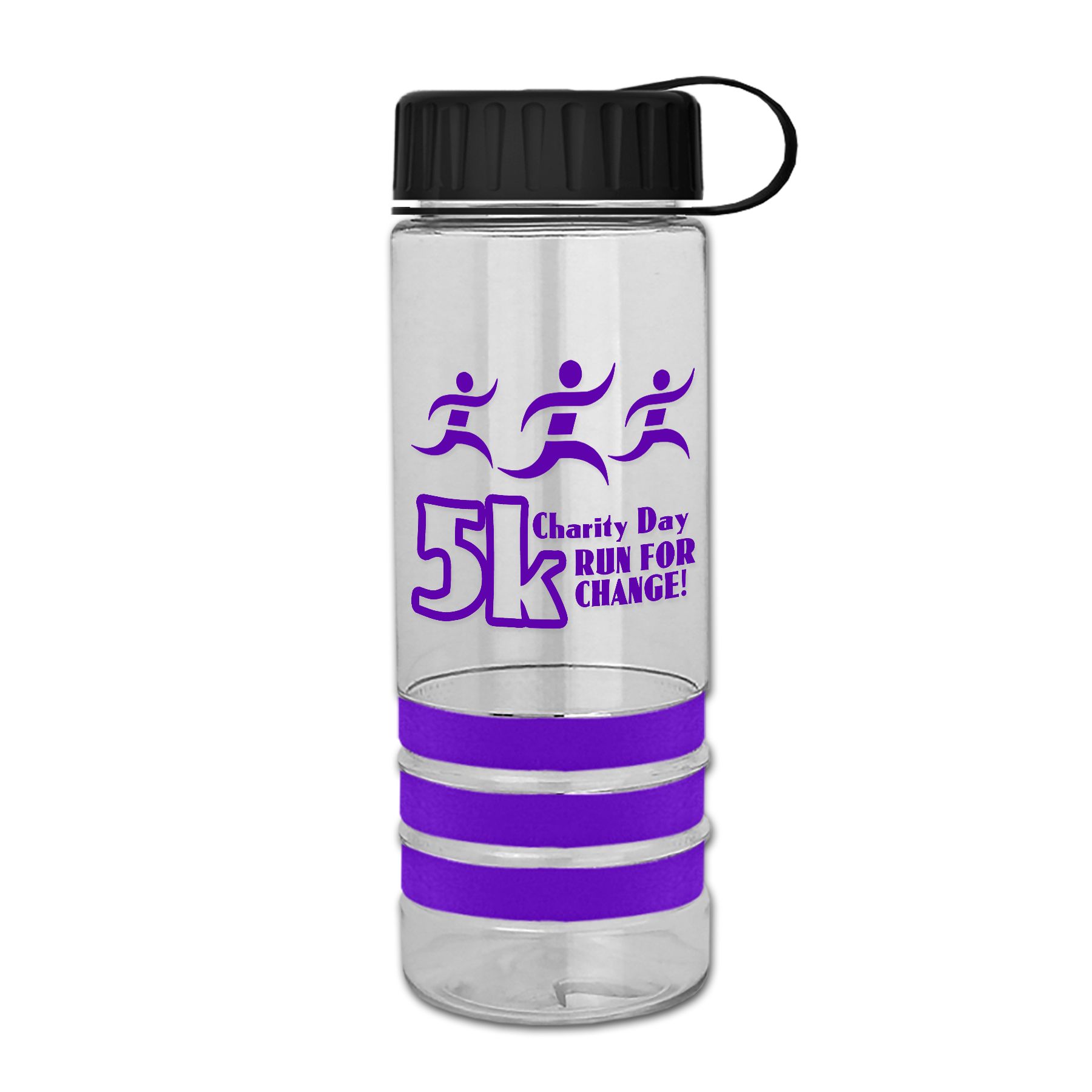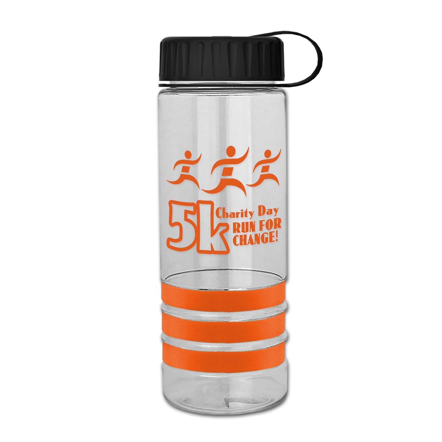 - 24 oz. Transparent Bottle with Tethered lid and Stripe bands