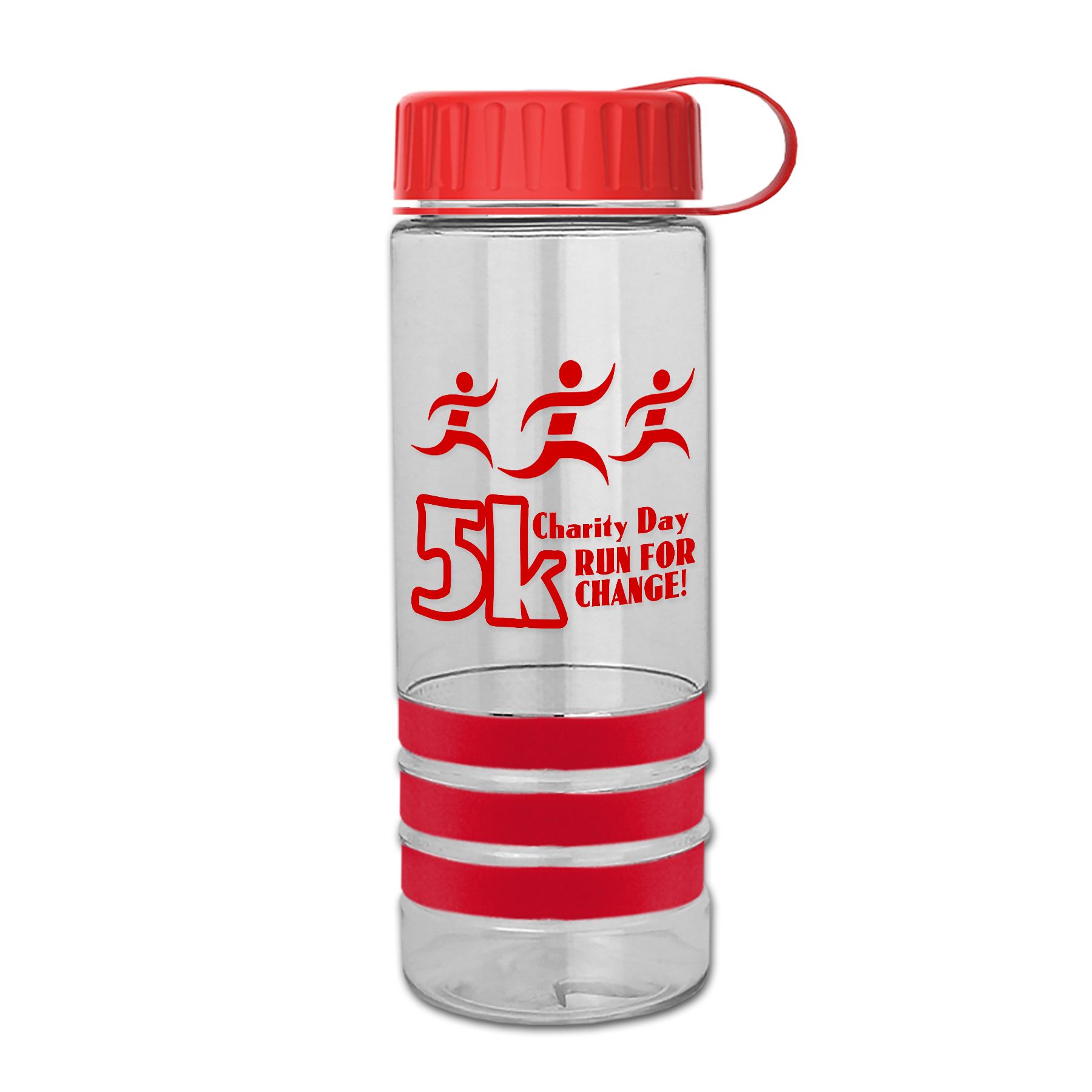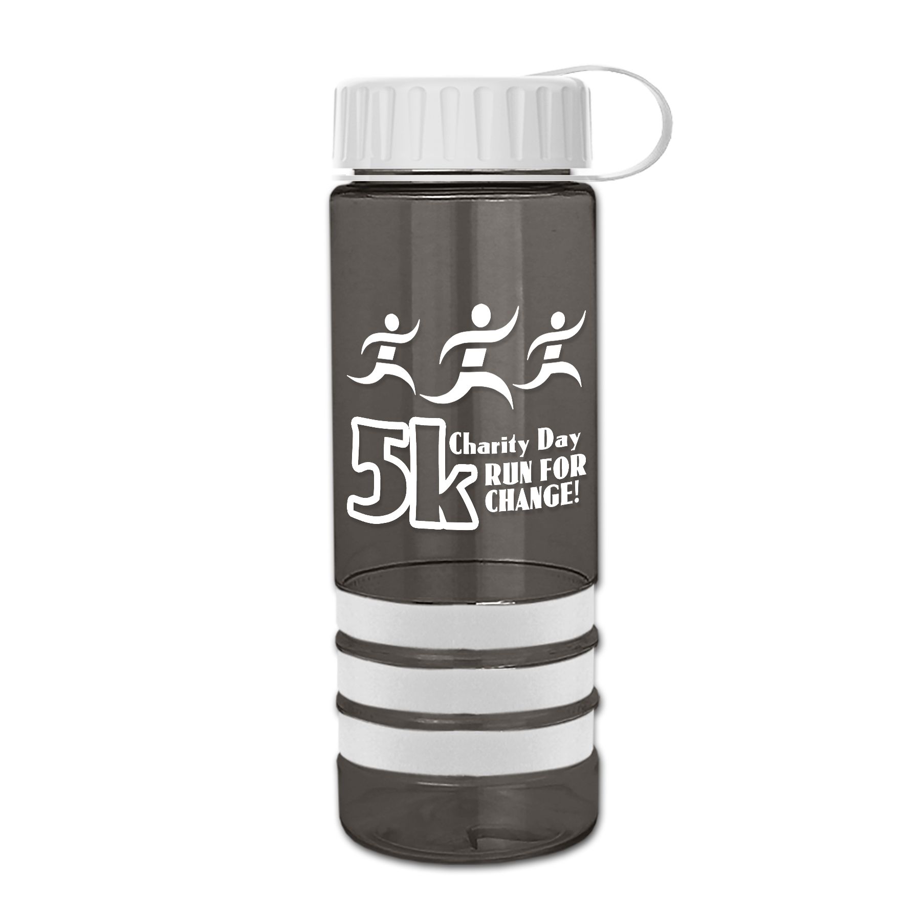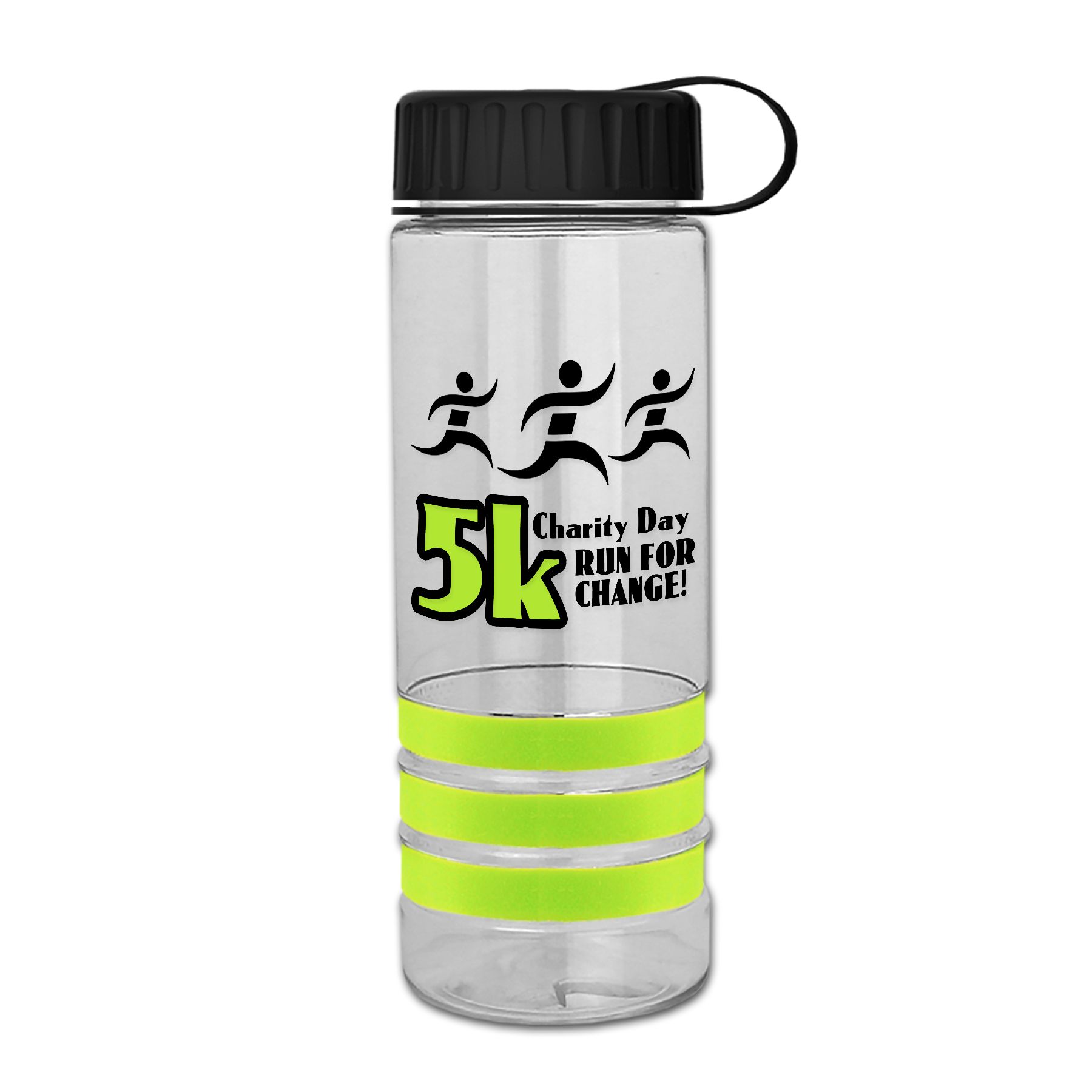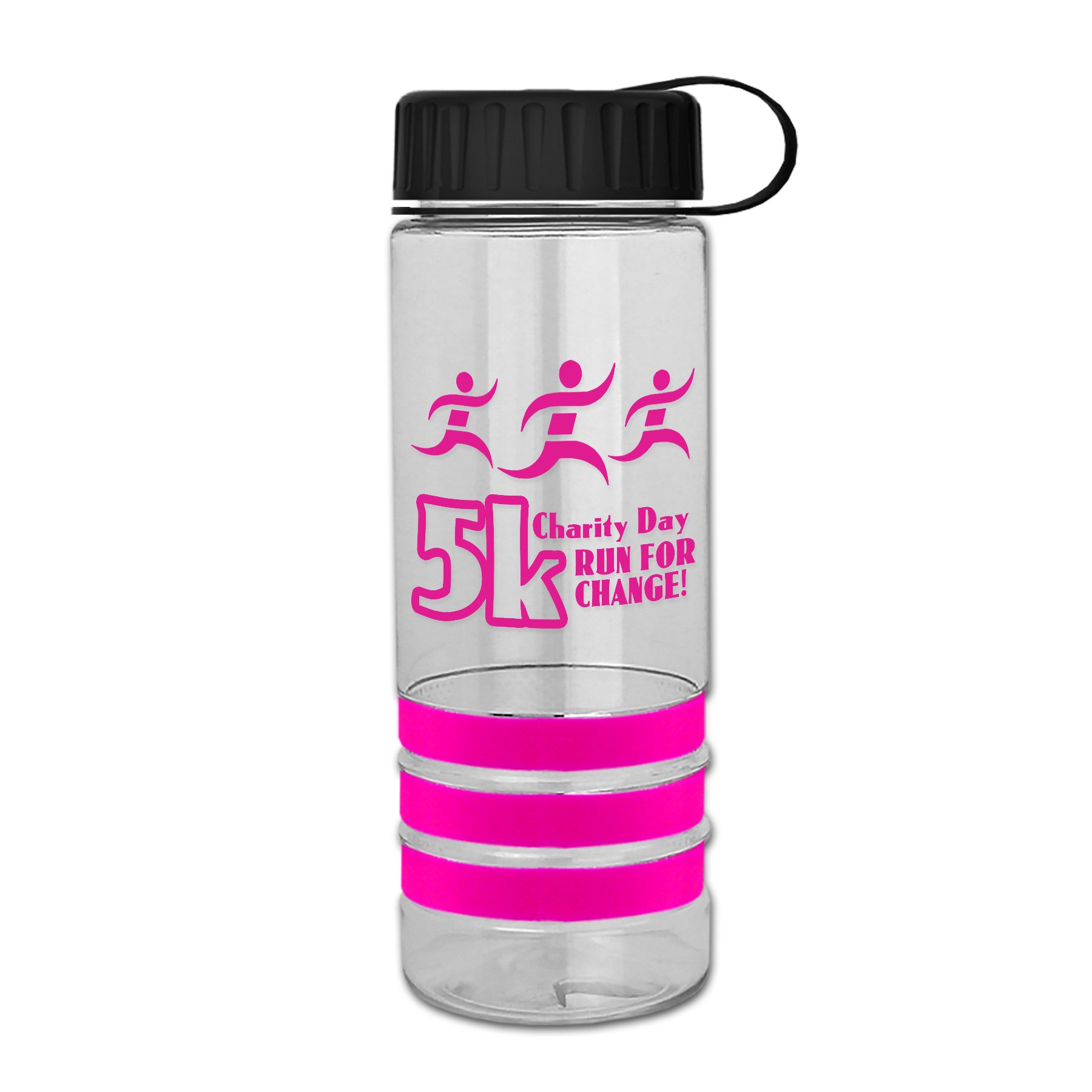 - 24 oz. Transparent Bottle with Tethered lid and Stripe bands