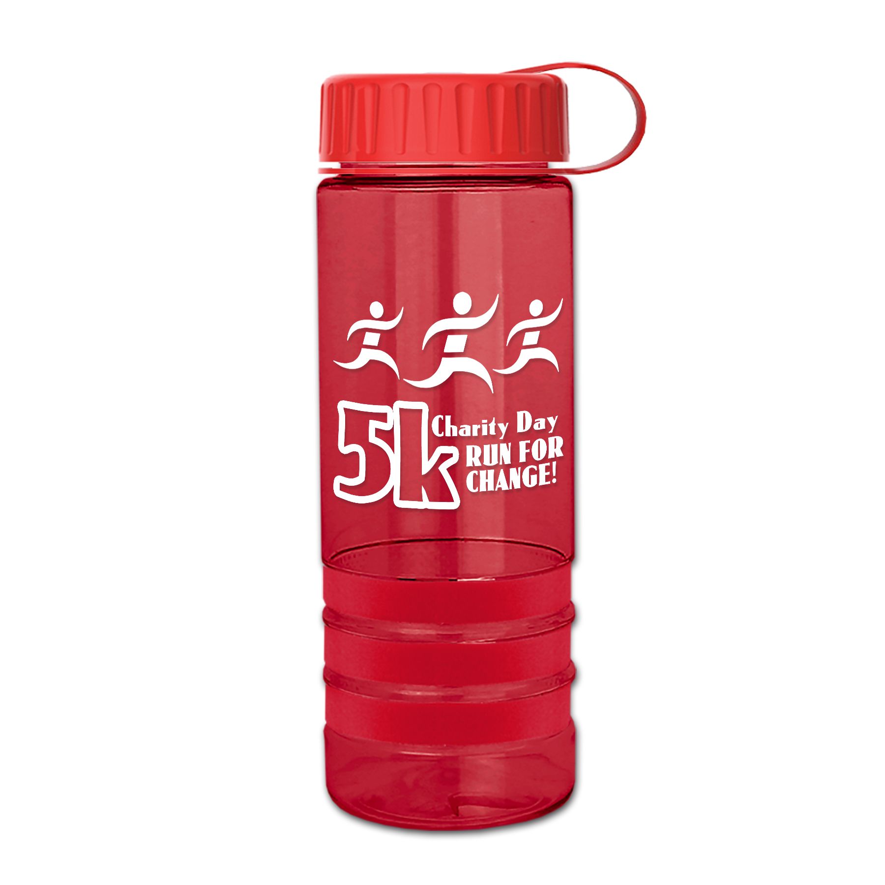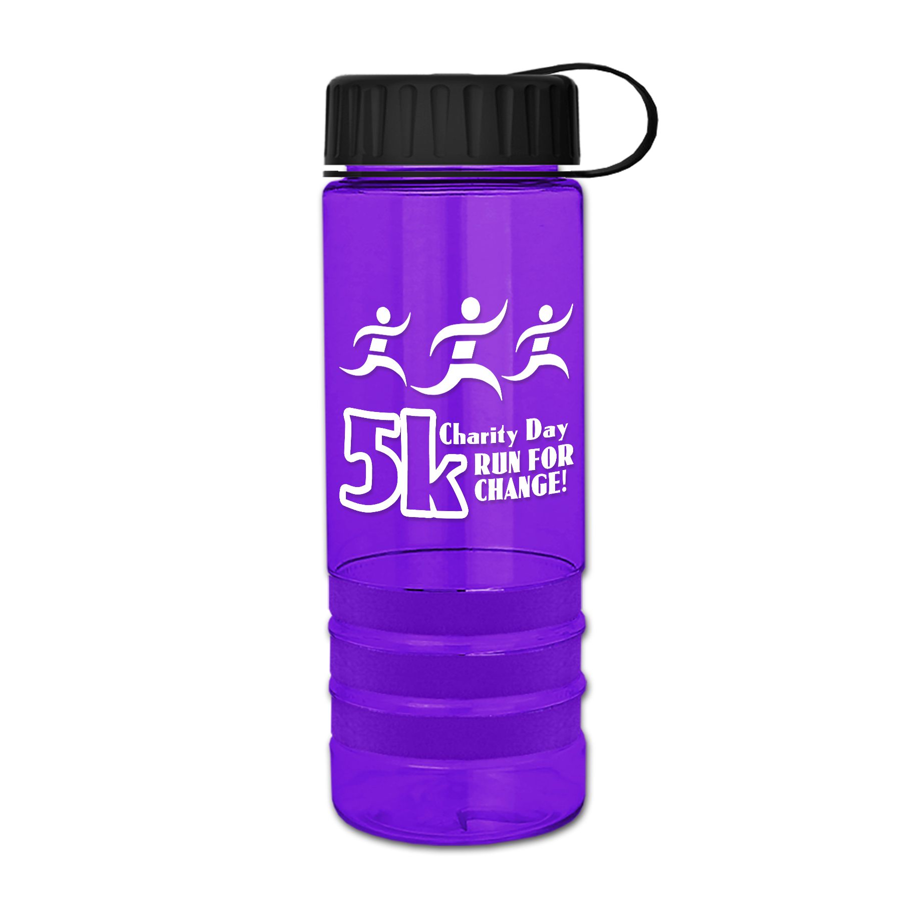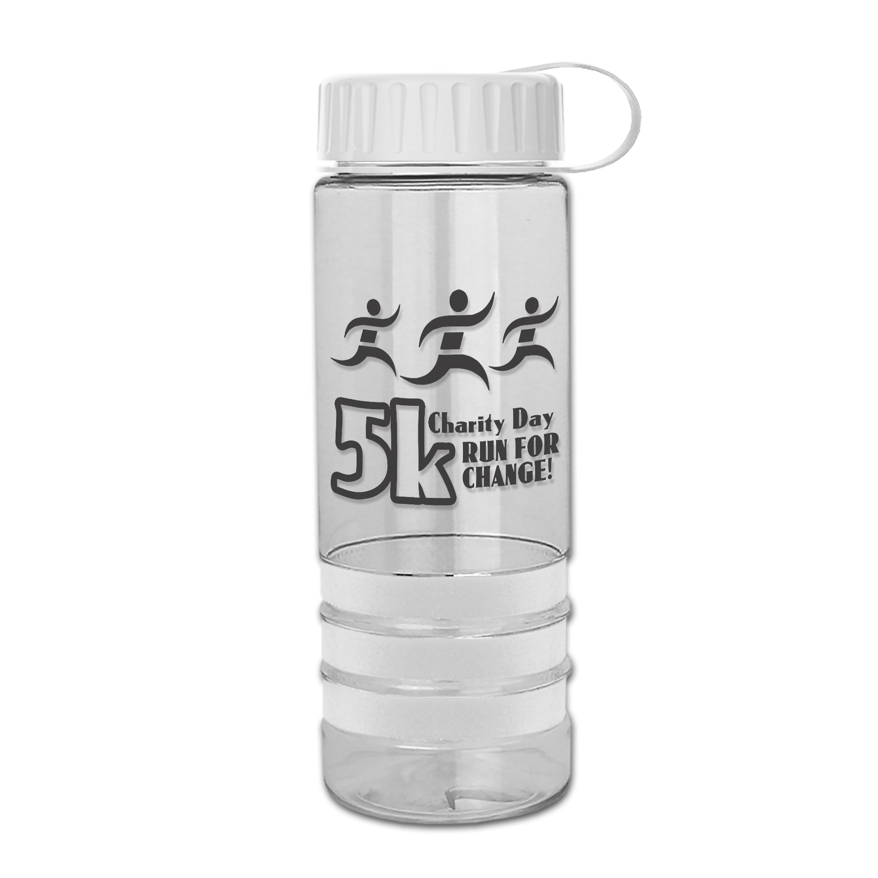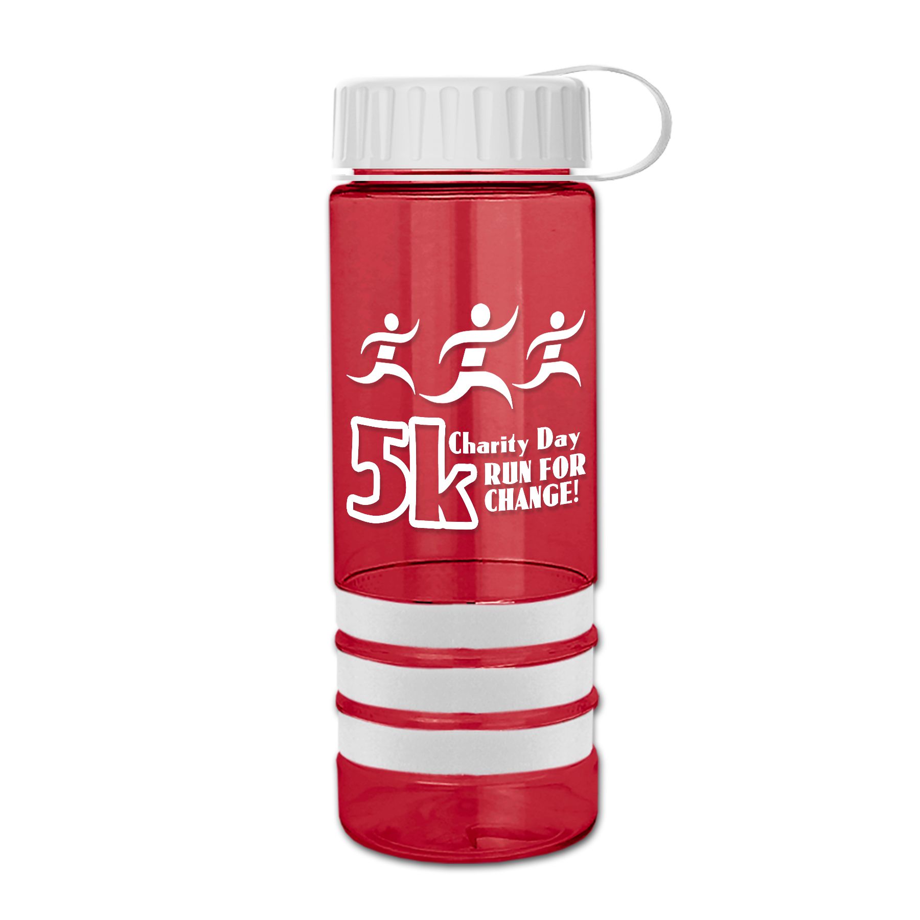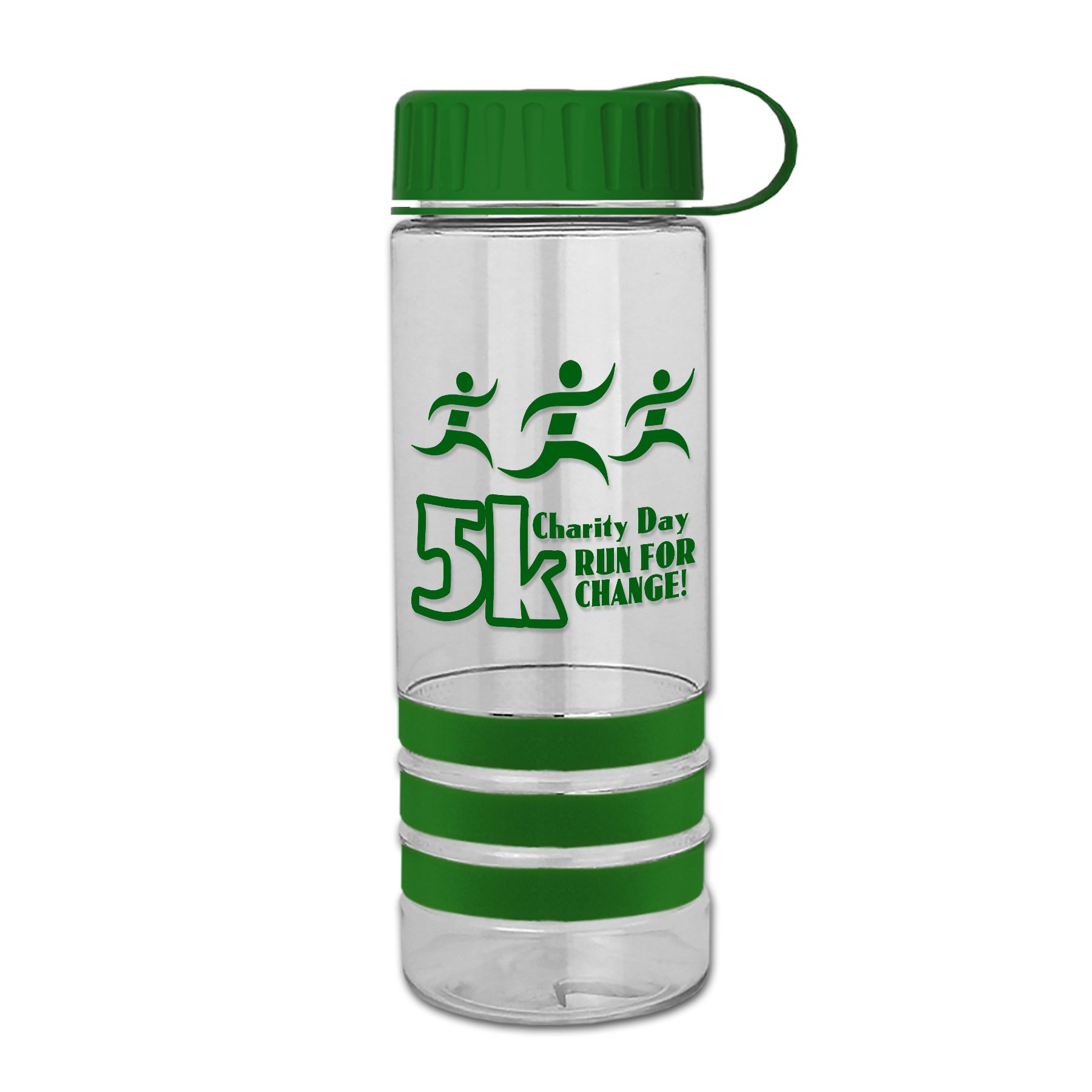 - 24 oz. Transparent Bottle with Tethered lid and Stripe bands
