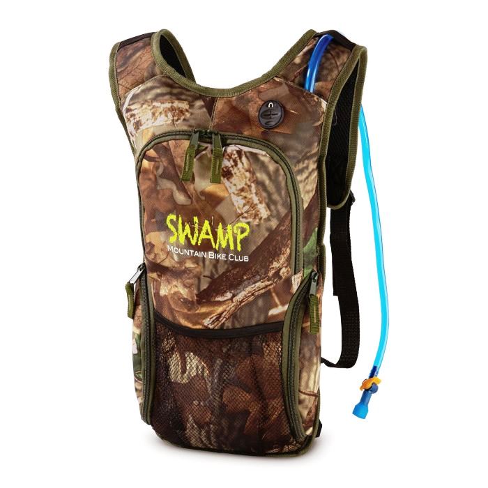 - Comfortable padded back panel and straps are perfect for all outdoor activities.Large main compartment can store rain gear or a change of clothes. Separate rear compartment holds 2-liter water reservoir. Front mesh pocket and two side zippered pockets provide additional storage for maps and snacks. Made of 840d polyester and 420 rip-stop.