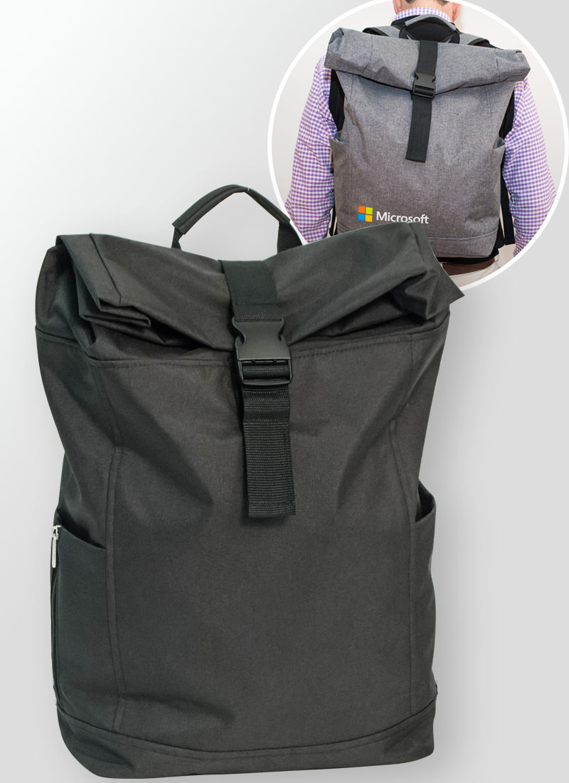 - Head south with your next branded campaign with the Arlington laptop pack. This 20? x 13? x 6? tote is made of 600 Denier polyester with a snowflake pattern for a worn and distressed look. It has a 9” x 13” laptop compartment, two side pockets, and a roll top closure that can be secured with a heavy plastic buckle.