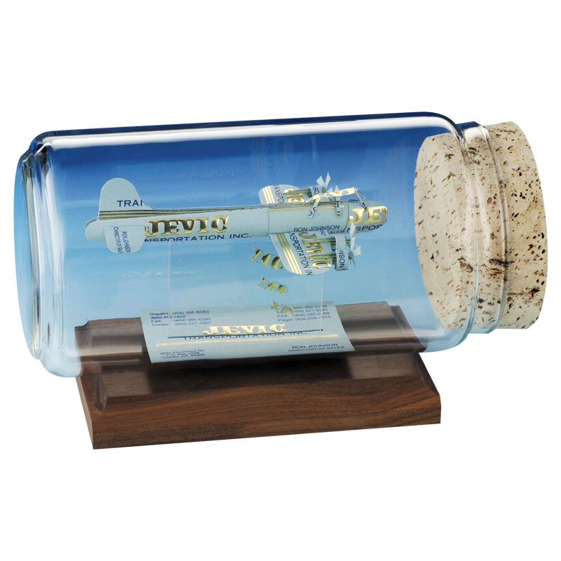 - A hand crafted business card sculpture will be made from your business cards and then placed into a bottle on a beautiful Walnut or Black base. Each award is individually packed for shipment.