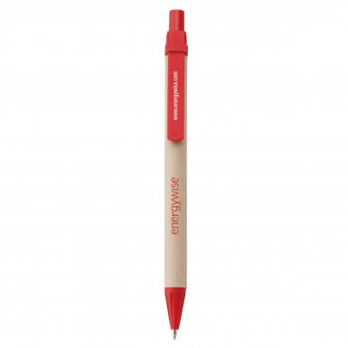 Each pen has a recycled symbol printed on the upper barrel opposite the clip. Due to our high standards of quality control, we must advise that slight irregularities in the cardboard of these pens may result in imperfections in barrel imprints.