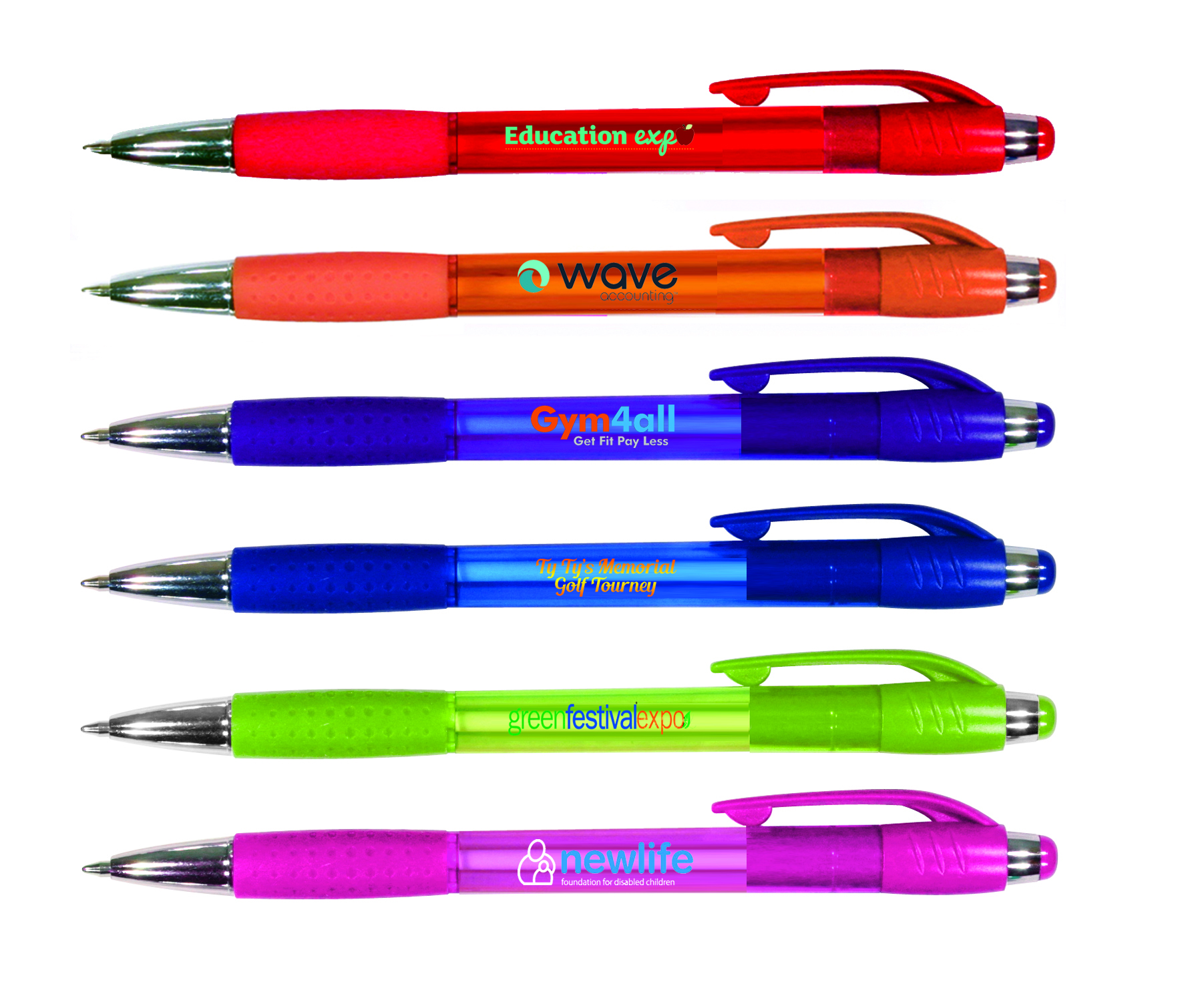 Full color printing using four-color process colors (cyan, magenta, yellow and black) on barrel. Images and type should be in CMYK. Additional art charges will apply to convert colors. Exact PMS matches are not possible. Neon and metallics are not available.