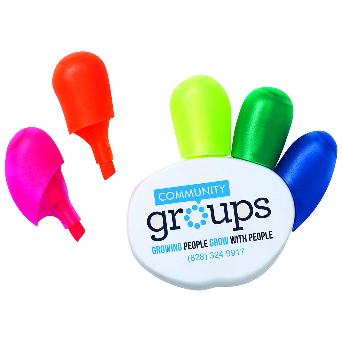- This hand/paw shaped highlighter comes with 5 different ink colors - pink, orange, yellow, green and blue - and is sealed for long writing life.