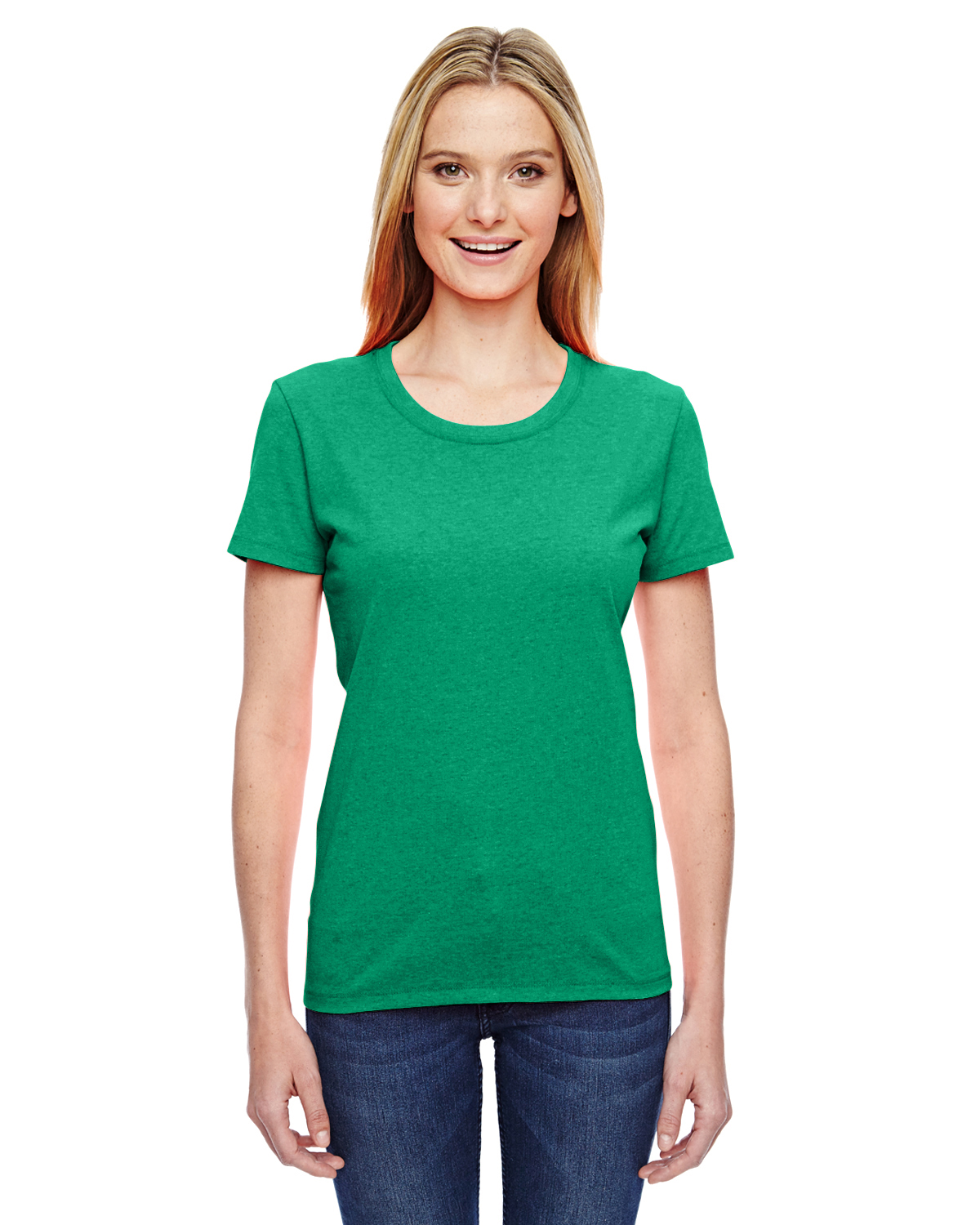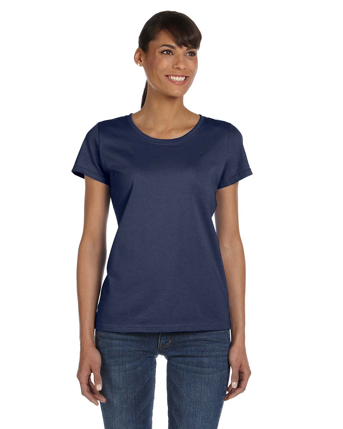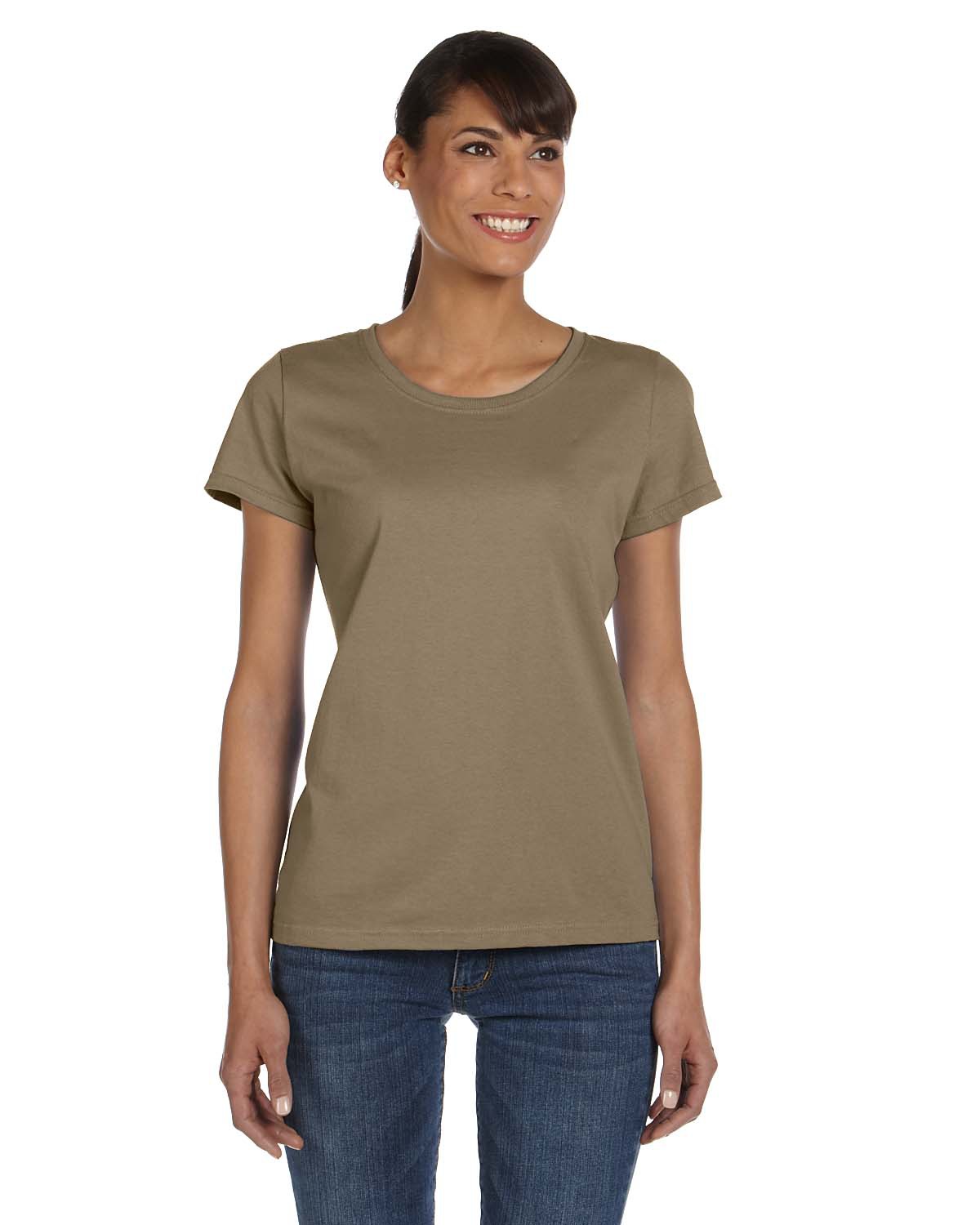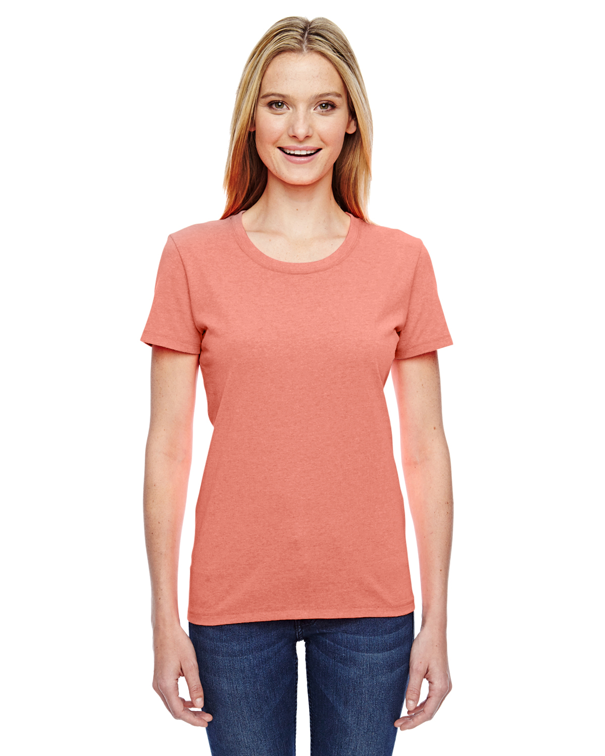 - 5 oz., 100% cotton preshrunk jersey; Ash is 98/2 cotton/poly; Athletic Heather is 90/10 cotton/poly ; Retro Heathers (Coral, Green, Pink, Purple and Royal) are 50/50; Made with sustainably sourced USA grown cotton; High-density fabric for exceptional print clarity; Contoured and sideseamed for a feminine fit; seamed 1x1 rib collar; Shoulder-to-shoulder tape; double-needle coverstitched front neck; Double-needle stitched sleeves and bottom hem; Fruit of the Loom styles are manufactured using sustainable protocols which are measured and reported annually by Fruit of the Loom, Inc.; Fruit of the Loom styles are manufactured with the commitment to enriching lives for people and communities which is measured and reported annually by Fruit of the Loom, Inc.