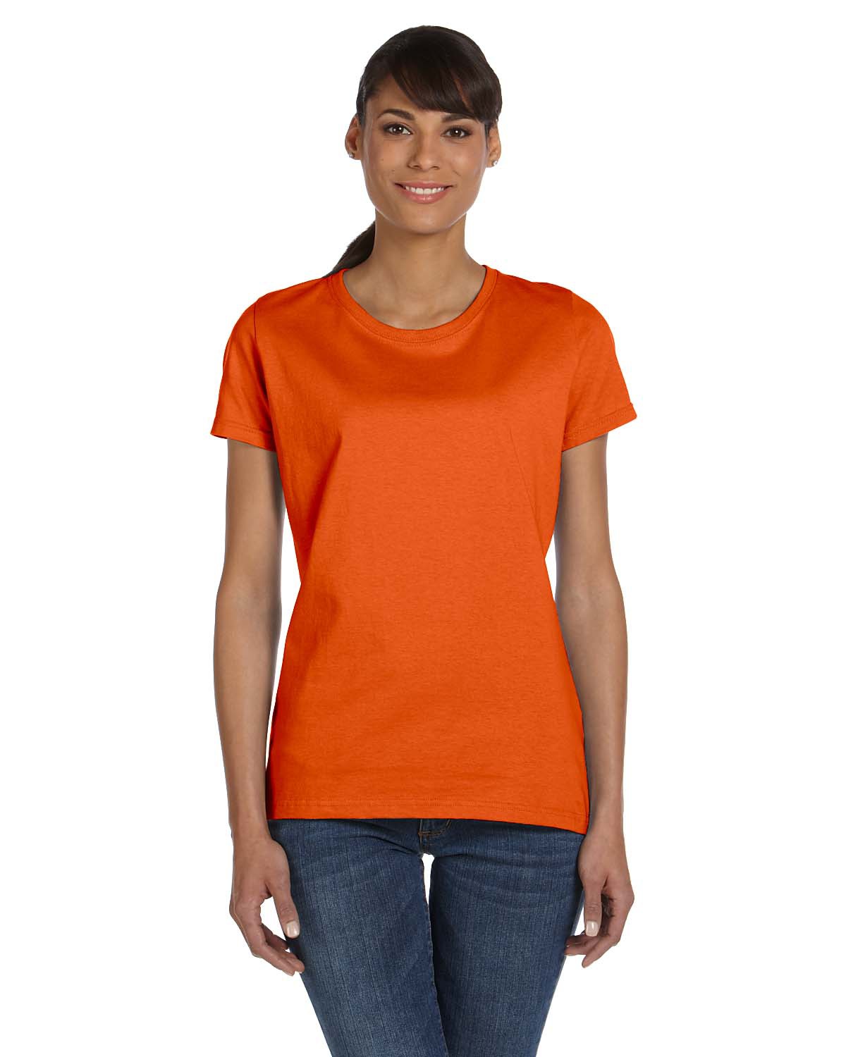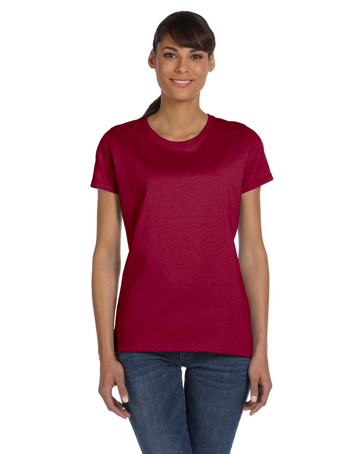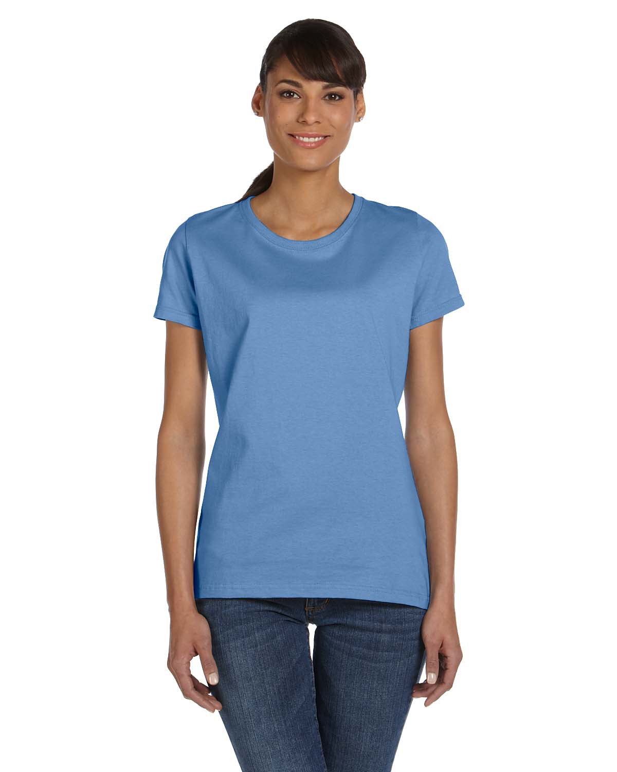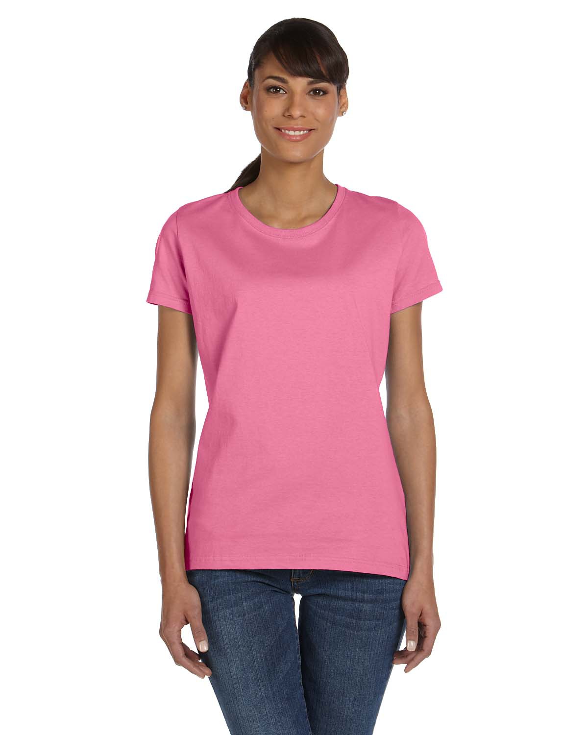 - 5 oz., 100% cotton preshrunk jersey; Ash is 98/2 cotton/poly; Athletic Heather is 90/10 cotton/poly ; Retro Heathers (Coral, Green, Pink, Purple and Royal) are 50/50; Made with sustainably sourced USA grown cotton; High-density fabric for exceptional print clarity; Contoured and sideseamed for a feminine fit; seamed 1x1 rib collar; Shoulder-to-shoulder tape; double-needle coverstitched front neck; Double-needle stitched sleeves and bottom hem; Fruit of the Loom styles are manufactured using sustainable protocols which are measured and reported annually by Fruit of the Loom, Inc.; Fruit of the Loom styles are manufactured with the commitment to enriching lives for people and communities which is measured and reported annually by Fruit of the Loom, Inc.