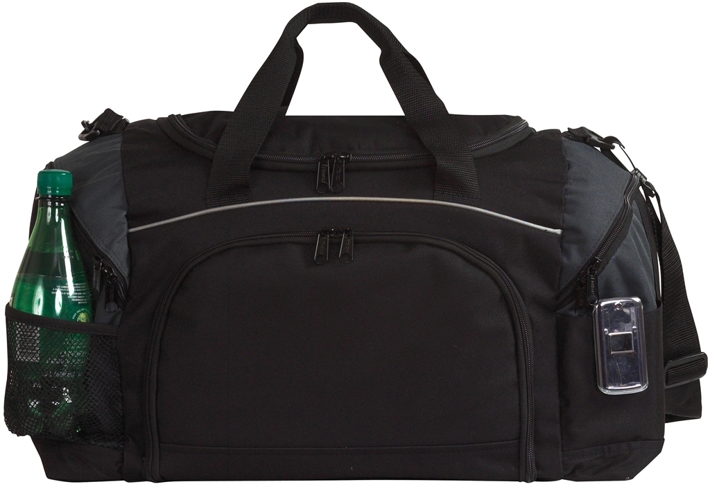 - This roomy duffel bag is the perfect companion for weekend travel. It features lots of great options, including dual-zippered end compartments and a front zippered pocket with organizer panel. Carry it with the sewn grip handles or sling it over your shoulder with the adjustable/removable strap.