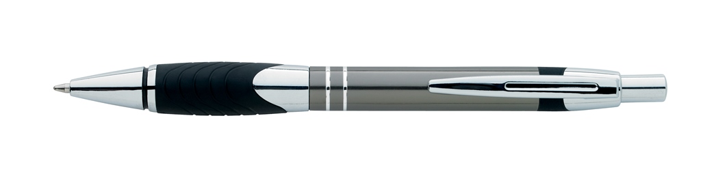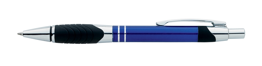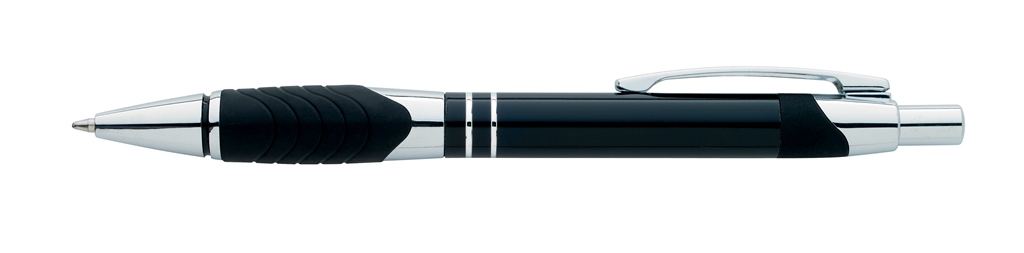 - Shiny chrome accents contribute to the high-end look of this aluminum pen, while its ridged rubber grip provides a comfortable writing experience.