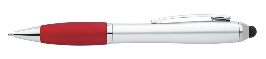 - The silver barrel of this multifunctional hourglass-shaped pen makes it shine. The rubber grip makes jotting a note a breeze, and the stylus provides another level of versatility.
