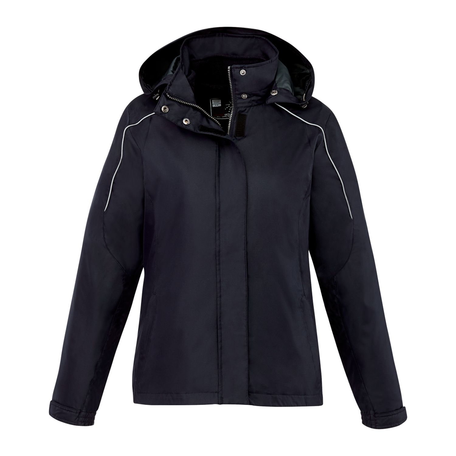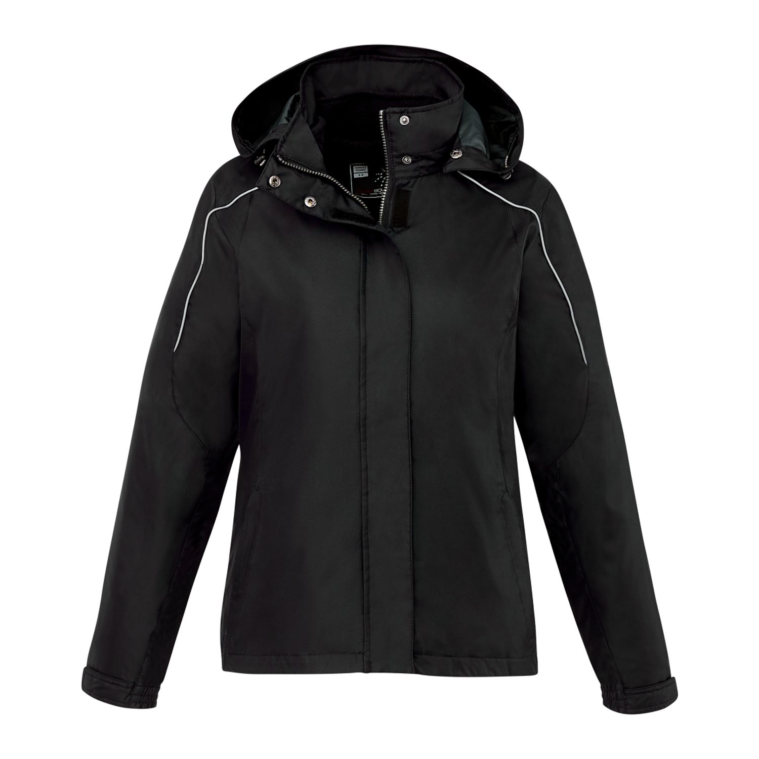 - The Valencia 3-in-1 Jacket has a removable fleece liner and detachable hood. This versatile women's jacket features a center front stormflap with hook and loop closures and lower zippered pockets with easy-grip pulls. Smartly detailed with reflective diminish piping and non-chaffing heat-transfer interior neck label, the jacket is also equipped with a handy interior patch pocket, half elastic cuffs with adjustable cuff tabs, and an adjustable drawcord and toggle at hem. The women's version fof the Valencia 3-in-1 Jacket features shaped seams for a more flattering fit.