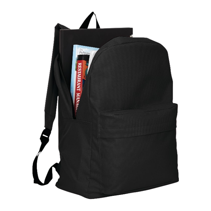 - The Buddy Budget 15" Backpack features a zippered main compartment and padded laptop sleeve that holds most 15 inch laptop computers. It also has a large gusseted zippered front pocket with a protective flap to provide you with additional storage. With padded, adjustable shoulder straps and a top carry handle, this durable backpack is engineered for comfortable wear.