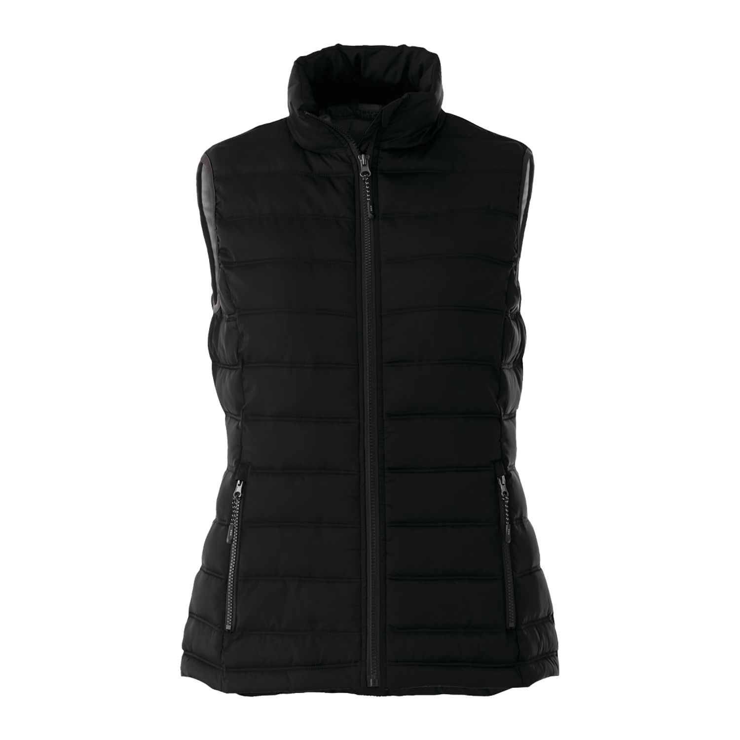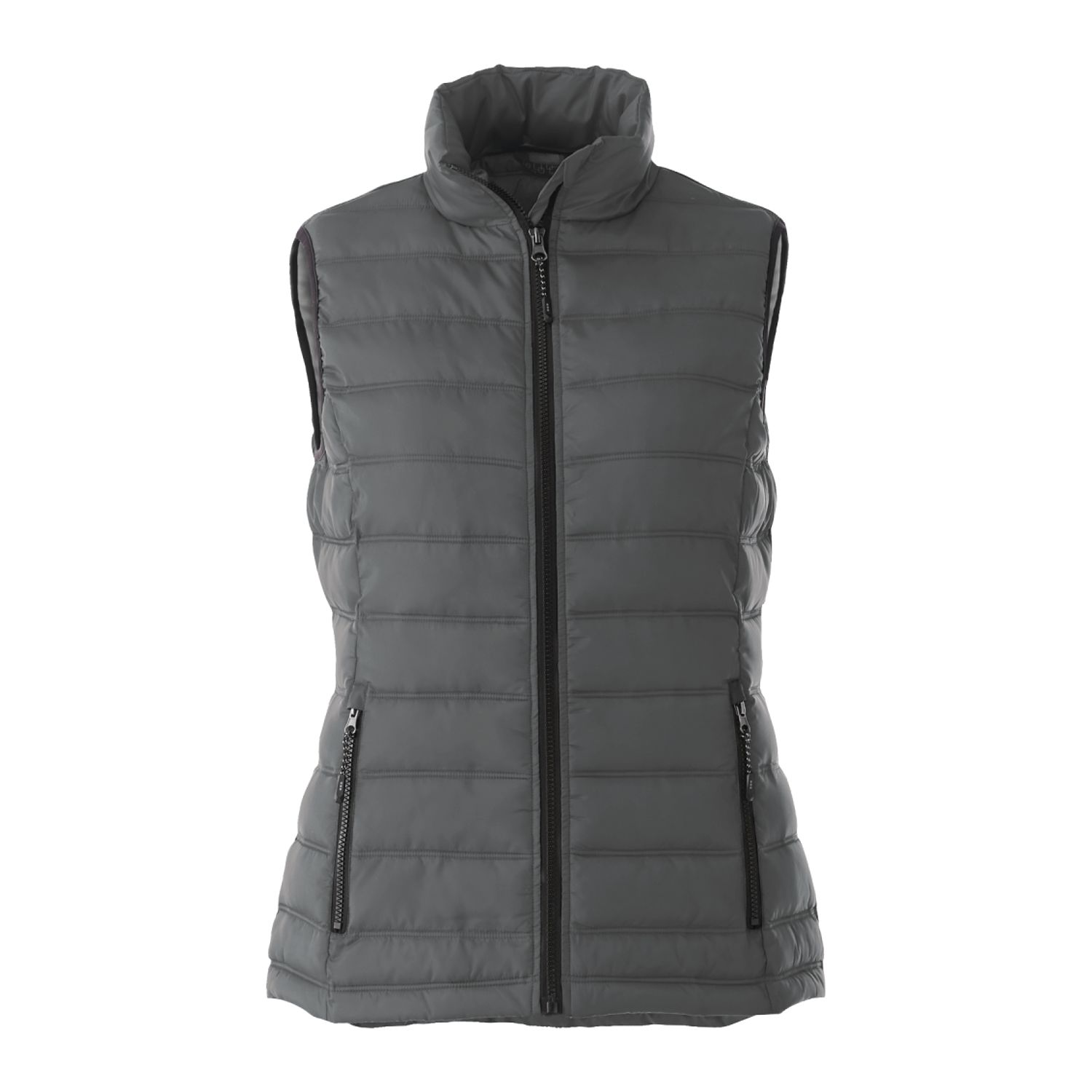 - Add an extra layer of warmth with the Mercer Insulated Vest. This lightweight women's vest features 100% polyester faux down insulation, an interior storm flap with chin guard and water-repellent finish. The Mercer is designed for decoration with a high-visibility back-shoulder panel. This insulated vest includes contrast binding on the hem and a dropped back hem with shaped seams and a tapered waist for a more natural fit. With trendy retail styling, the Mercer Insulated Vest is a fashion-forward look for any brand.