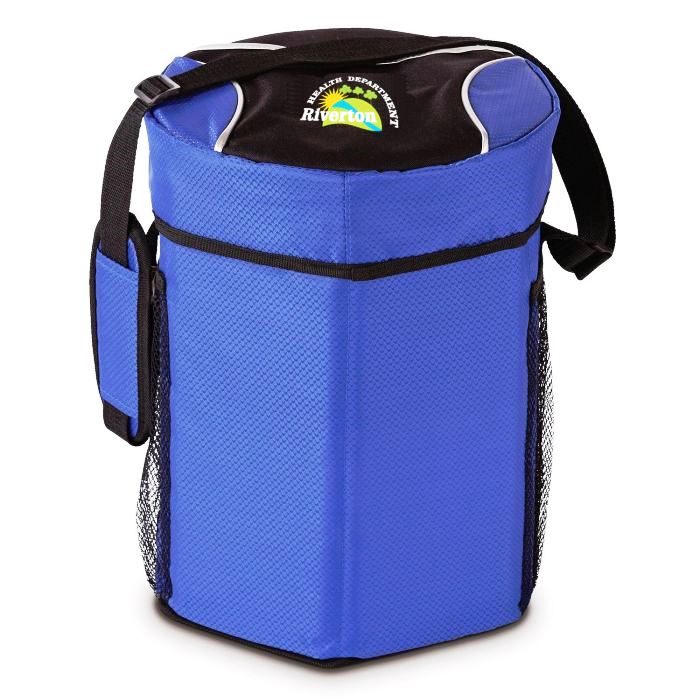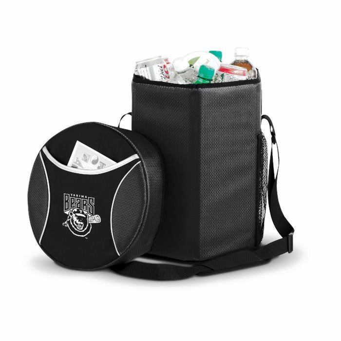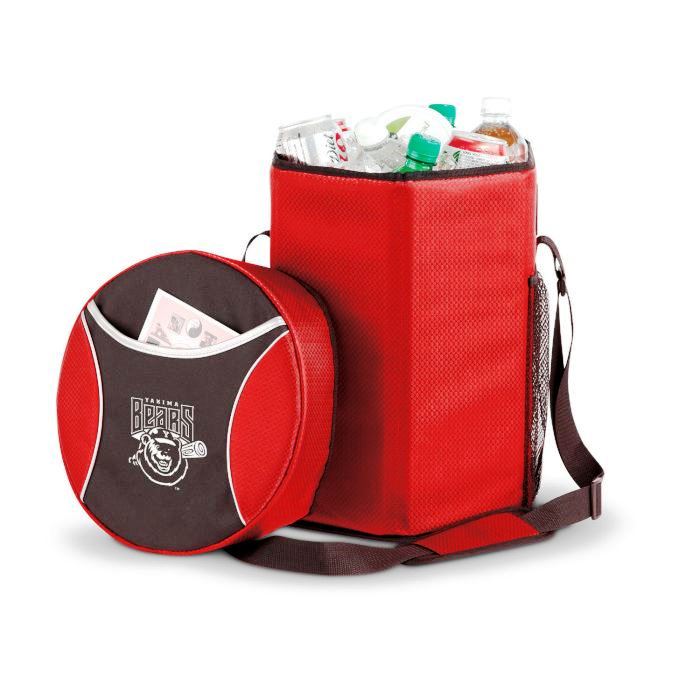 - A unique Ice River cooler design that doubles as a portable seat. 12-can capacity. 31 Adjustable padded shoulder strap. Folds flat when not in use. Seated load capacity 225 pounds.