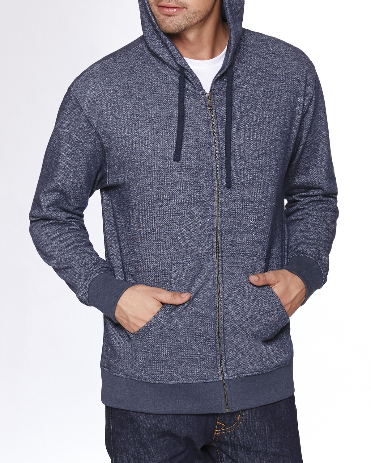 Heather denim-inspired fleece gives this modern style a cool, vintage vibe