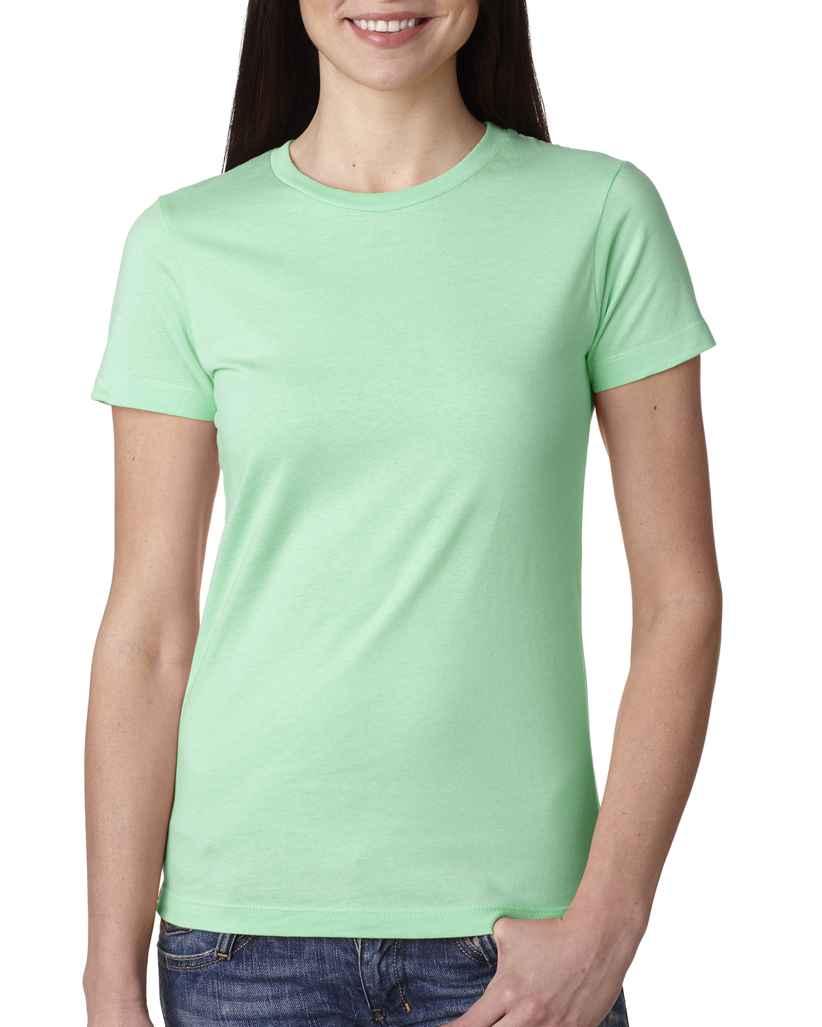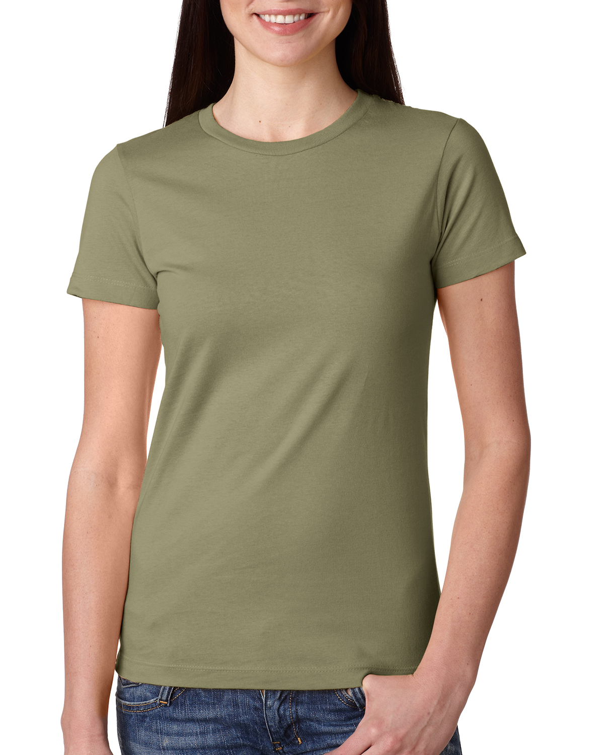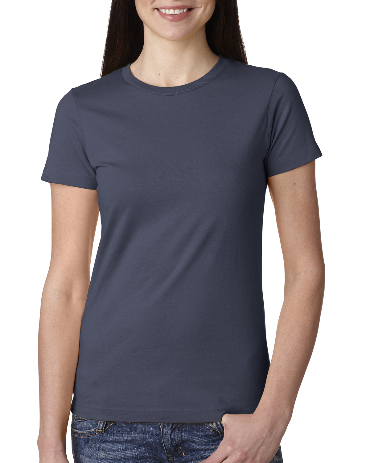 - 100% combed ringspun cotton fine jersey; 4.3 oz.; 32 singles; fabric laundered for reduced shrinkage; 1x1 baby rib-knit set-in collar with front coverstitch; Tear-away label