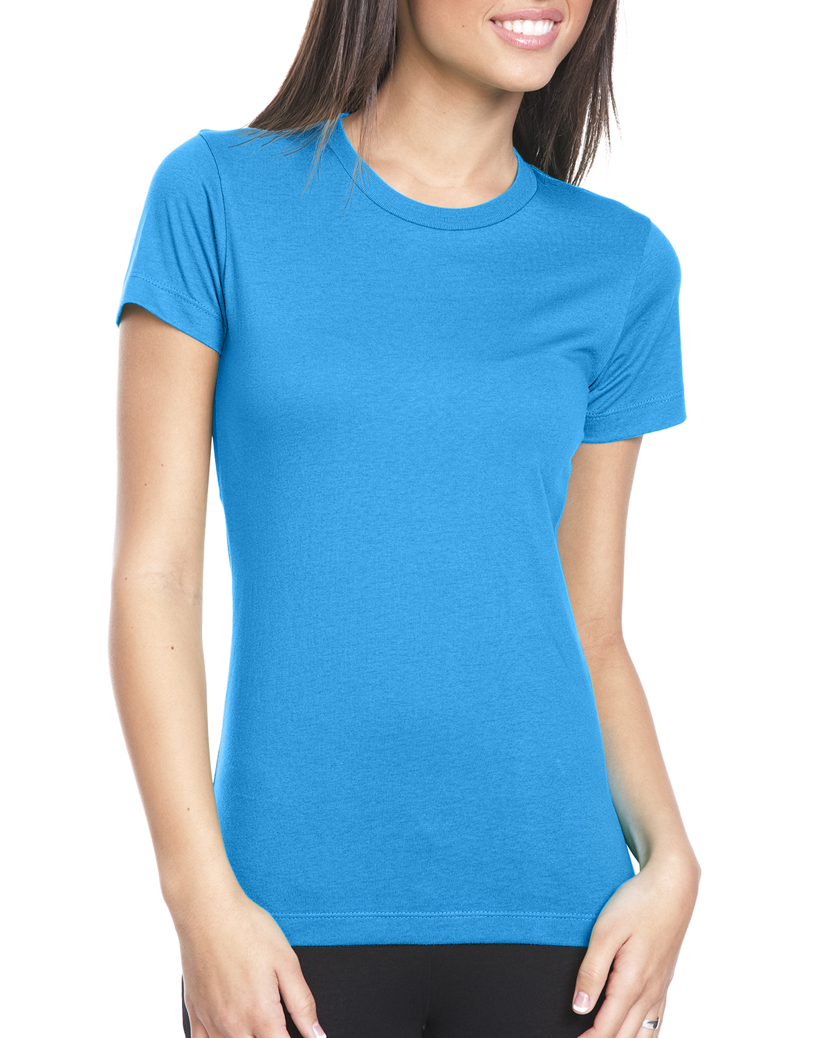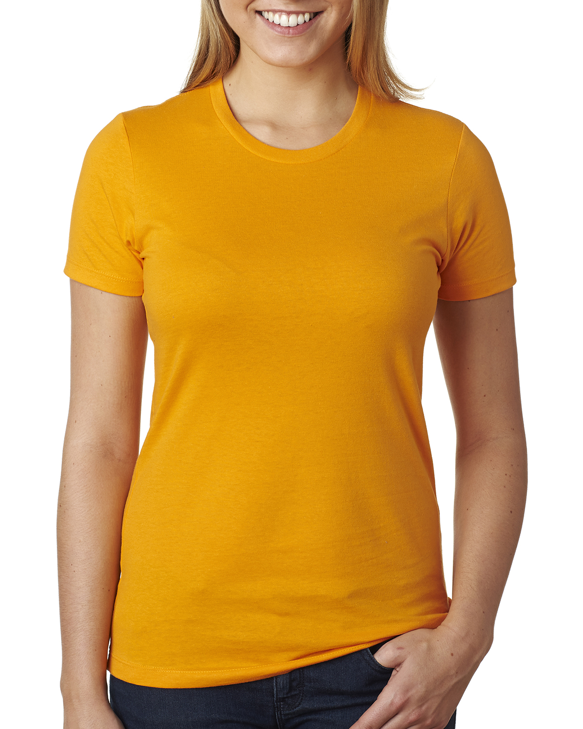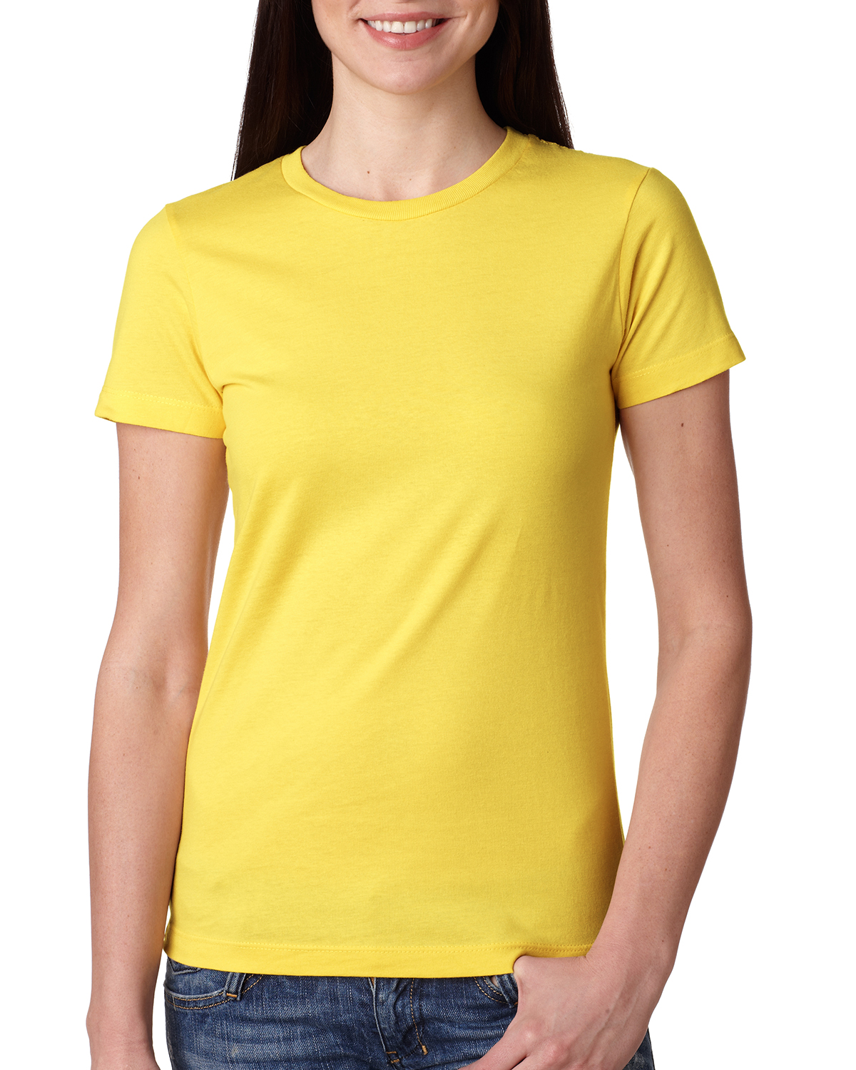 - 100% combed ringspun cotton fine jersey; 4.3 oz.; 32 singles; fabric laundered for reduced shrinkage; 1x1 baby rib-knit set-in collar with front coverstitch; Tear-away label